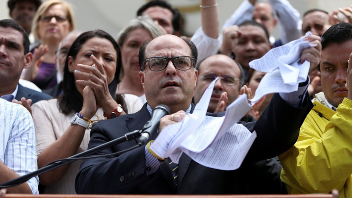 La oposición venezolana ha acusado este jueves al presidente Nicolás Maduro de llevar a cabo un “golpe de Estado”, después de que el Tribunal Supremo —controlado por el chavismo— decidiese retirar las competencias a la Asamblea Nacional (el Parlamento),con mayoría opositora, por estar en “desacato”. "Nicolás Maduro ha organizado un golpe en Venezuela", ha declarado el presidente de la Asamblea Julio Borges. El diputado ha asegurado que el Legislativo desconoce el fallo del tribunal, al que ha calificado de "basura". También el líder opositor Henrique Capriles, gobernador del Estado de Miranda y ex candidato presidencial, ha calificado la maniobra del Supremo como un "golpe de Estado". Borges ha pedido al Ejército que rompa su silencio ante la "ruptura del orden constitucional".