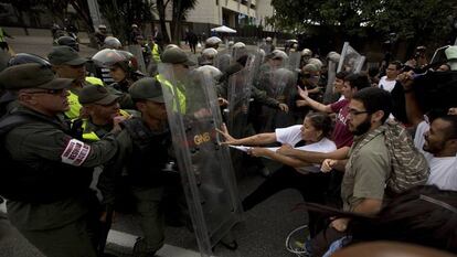 La Guardia Nacional Bolivariana de Venezuela (GNB, policía militar) ha reprimido con gases lacrimógenos a cientos de manifestantes opositores que se dirigían hacia la Defensoría del Pueblo, en Caracas, en protesta por las acciones del Tribunal Supremo de Justicia en contra del Parlamento, informa Efe. Los opositores no pudieron continuar su trayecto debido a la presencia de tanquetas antimotines que bloquearon la vía, y fueron dispersados con gases cuando intentaban tomar una vía alterna hacia el organismo del Poder Moral.