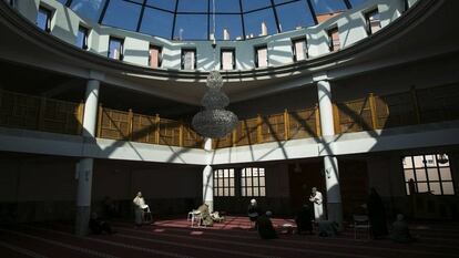 Cuando llega la hora del rezo, al caer el sol, entran a la mezquita hombres solos o en grupo, unos vestidos con ropas occidentales, los más con túnicas, muchos con las barbas pobladas.