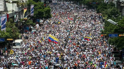 La escalada de tensión en Venezuela no cesó con la que fue bautizada como “madre de todas las marchas”. Eso fue el punto de partida para nuevas protestas, aunque los convocantes comunican sus planes día a día, sobre todo a través de las redes sociales. Cientos de ciudadanos volvieron a concentrarse este jueves en las mismas zonas que el miércoles desde las 10 de la mañana. Con el paso de las horas fueron aumentando y se convirtieron en miles. En la plaza de Altamira, en el oeste de Caracas, en vías estratégicas como la de Prados del Este, y con la meta inicial: alcanzar la sede de la Defensoría del Pueblo, en el centro de la ciudad. Este viernes lo harán en los barrios y urbanizaciones y el sábado prometen volver a marchar.