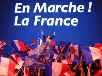 El candidato de En Marche! no es un político profesional y longevo como Chirac, sino un novato. Fue banquero y, tras un breve paso por el gabinete del presidente François Hollande y dos años como ministro de Economía, sin haber ganado nunca antes unas elecciones, se lanzó a la presidencia. Cree que izquierda y derecha son categorías obsoletas y que hay que pensar en términos de conservadores y progresistas. Hay conservadores y progresistas de izquierdas y derechas, en su opinión, y él reclama el manto de este progresismo transversal.