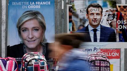 El centrista Macron, candidato de En Marche!, y Le Pen, candidata del viejo partido ultra Frente Nacional, empezaron este lunes a tomar posiciones ante la nueva fase de la campaña. Ya no son 11 candidatos sino ellos dos, los que recogieron más votos en la primera vuelta del 23 de abril. Macron, 8,65 millones, un 24,01%. Le Pen, 7,67 millones, un 21,30%.