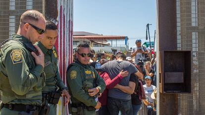 La policía de fronteras de EE UU permite abrir unos minutos la valla fronteriza de Tijuana para que las familias se puedan abrazar