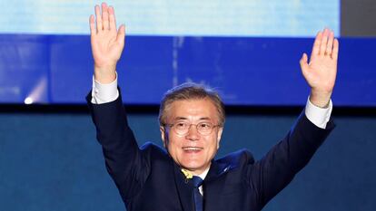 “Seré el presidente de todos los coreanos”. Con este compromiso, el ya presidente electo de Corea del Sur, Moon Jae-in, proclamaba su triunfo en las elecciones de este martes en un discurso a sus simpatizantes en el centro de Seúl. Aunque el resultado definitivo no se dará a conocer hasta el miércoles, los primeros recuentos y las encuestas a pie de urna otorgan una ventaja aplastante al líder del Partido Democrático.