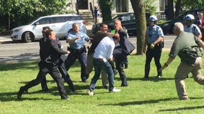 “De repente empezaron a correr hacia nosotros”, explicó a la cadena ABC un manifestante. “Alguien me empezó a golpear en la cabeza repetidas veces. Pensé, ya estoy en el suelo, ¿por qué sigue pegándome?”, dijo. La pelea tuvo lugar en el acomodado barrio de Dupont Circle, en el que se encuentran las representaciones diplomáticas de muchos países en Washington.