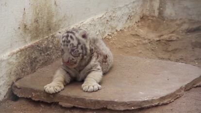 Dos cachorros de tigre de Bengala blancos han hecho su debut en un zoológico de Ciudad Juárez. Allí nacieron hace un mes y ahora han realizado su aparición pública bajo la atenta mirada de los veterinarios, sorprendidos de que puedan convivir junto a sus padres, Sasha y Jazmín.