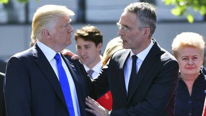 El escenario no invitaba a la confrontación. Trump acababa de inaugurar un pequeño monumento conmemorativo del 11-S en la nueva sede de la OTAN en Bruselas. Después de dedicar un momento de silencio a las víctimas del atentado de Mánchester, los mandatarios de los países aliados escuchaban solemnemente al líder estadounidense y afrontaron con rostro serio las invectivas. "Muchas de estas naciones deben cantidades enormes de dinero de años anteriores", ha insistido Trump, que parece entender el gasto militar como una deuda entre aliados. "Incluso ese 2% es insuficiente para cerrar la brecha; debería ser el mínimo para afrontar la amenaza tan feroz y real que tenemos", ha abundado el presidente, cuya estrategia defensiva consiste en aumentar el gasto militar mientras recorta bruscamente la ayuda al desarrollo.