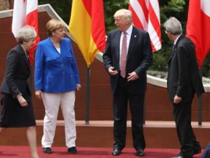 La cumbre de los siete países más industrializados —Francia, Italia, Alemania, Japón, Canadá, Estados Unidos y Reino Unido— celebrada a finales de semana en Taormina y la cumbre de la OTAN previa en Bruselas han ofrecido resultados decepcionantes para los europeos. El presidente de EE UU, Donald Trump, en su primera gira internacional, se ha resistido a sumarse a los esfuerzos globales para combatir el cambio climático, ha discrepado de los europeos en asilo y refugio, ha rehusado respaldar la defensa colectiva en el marco de la OTAN y ha insultado a los alemanes a cuenta de su superávit comercial. Merkel calificó las negociaciones sobre el clima y la negativa de Washington a secundar el acuerdo de París de “muy difíciles por no decir insatisfactorias”.