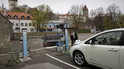 Ha pasado un largo tiempo desde la última vez que Ülle Jesse pisó una gasolinera. Pasar por el surtidor ha dejado de ser una de sus tareas ineludibles, a pesar de que recorre a diario en coche las empedradas callejuelas del centro histórico de Tallin, donde vive. Su coche es eléctrico y no se alimenta de petróleo. Lo enchufa el tiempo necesario y listo, comenta al volante del pequeño Nissan Leaf blanco, uno de los muchos que circulan por la capital de Estonia, donde viven unas 420.000 personas. Jesse, diseñadora gráfica de 39 años, no sólo lo compró por compromiso medioambiental, también dio el paso seducida por las jugosas subvenciones del Gobierno estonio para fomentar este tipo de vehículos. “Hace cinco años necesitábamos un segundo coche y no lo pensamos dos veces”, comenta.