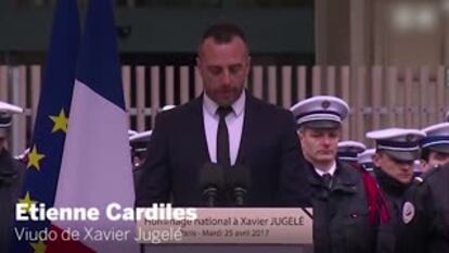 Cardiles y Jugelé habían formalizado su relación hace cuatro años y tenían previsto casarse. Un terrorista se cruzó en su camino. En el homenaje oficial que se celebró en París entre las dos vueltas de las elecciones presidenciales, Cardiles pronunció un sentido discurso que rápidamente se hizo viral. “Sufro sin odio”, dijo ante las máximas autoridades del país y ante las cámaras que retransmitieron sus palabras a toda Francia. Y le hizo una promesa a quien fuera su pareja durante tanto tiempo: “Estarás en mi corazón para siempre”.