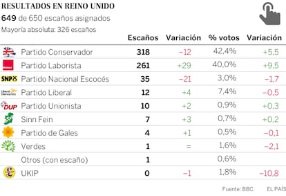Un nuevo referéndum de independencia no parece ser el camino deseado para un buen número de escoceses, que retiraron ayer su apoyo al partido nacionalista escocés. El SNP de Nicola Sturgeon pierde parte del terreno que había ganado en 2015, cuando arrasó en las elecciones generales que lo consagraron como la tercera fuerza política del país. Con 35 escaños (de los 59 que aporta Escocia) lo sigue siendo. Y también el partido más votado en Escocia. Sin embargo, no ha conseguido revalidar el extraordinario resultado de hace dos años, cuando subió de seis escaños a 56. Y destaca que aunque los laboristas han logrado recuperar algunos de los puestos que perdieron hace dos años, ha sido el partido conservador, hasta hace nada una fuerza política prácticamente invisible, el que le ha arrebatado un buen número de votos. Y entre ellos dos escaños muy jugosos y simbólicos. El de Angus Robertson, en número dos del SNP y líder del partido en Westminister, y el del histórico Alex Salmond, antiguo ministro principal de Escocia.