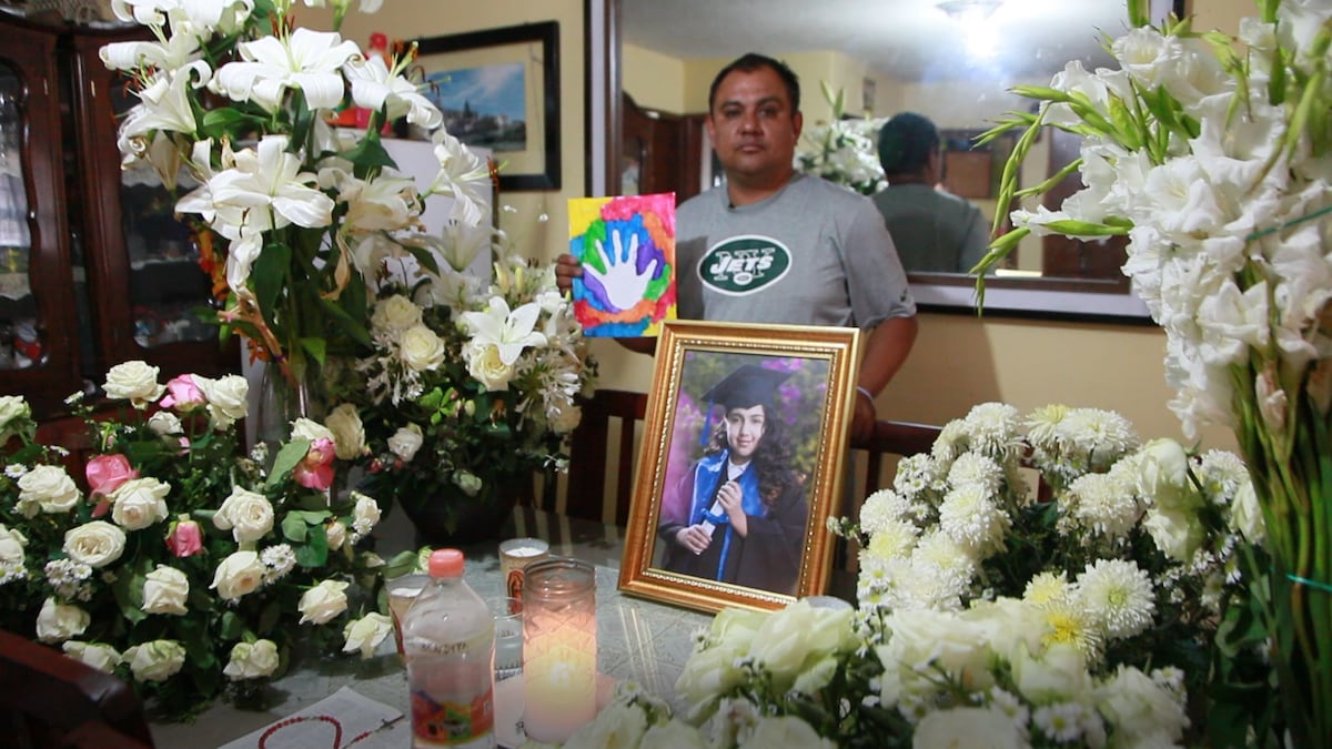 "Nosotros hicimos lo elemental que debió hacer la Policía", explica Gutiérrez roto, desde su casa en Nezahualcóyotl. En la mesa principal han colocado un altar con decenas de rosas blancas, flores Acapulco y una foto de ella con el birrete de graduación de su escuela. "La ceremonia iba a ser ahora y tenerla que vestir así para sepultarla, pues, fue muy duro", cuenta el padre.