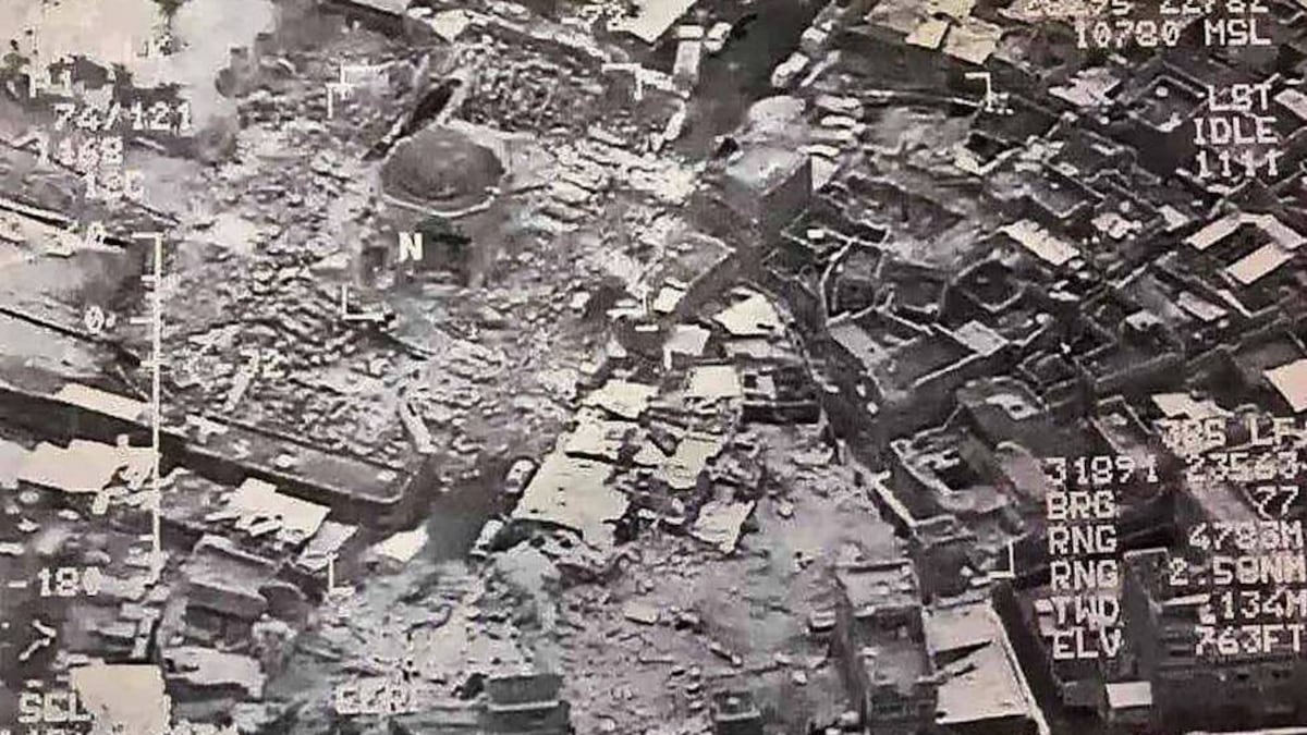 El vídeo difundido por los militares muestra como la frágil estructura del siglo XII se derrumba tras un fuerte estallido. Los tres centenares de yihadistas que, según los analistas militares, aún resisten en el último reducto de la que fuera su capital iraquí hacía días que habían sembrado de explosivos el recinto y amenazado con hacerlo saltar por los aires. Sin embargo, no admitieron su acción y acusaron a Estados Unidos de haberlo bombardeado, extremo desmentido tanto por las fuerzas norteamericanas como por las iraquíes.