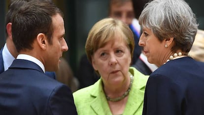 Además, en la primera cumbre de Macron, dejaron claro que May y su Brexit son, de momento, segundo plato. La primera ministra británica presentó un esbozo de su propuesta sobre los derechos de los europeos que habitan en Reino Unido. Los detalles revelan que May ha abandonado la dureza inicial en este capítulo —empezó sugiriendo que los europeos se atuvieran a las reglas ordinarias de inmigración— para conceder un estatus especial a los ciudadanos comunitarios. Reino Unido reconocerá automáticamente el derecho a quedarse a todos aquellos ciudadanos que lleven cinco años de residencia en la fecha de corte que se establezca para el Brexit, según informó un alto cargo británico. Y aquellos que no sumen esos cinco años en dicho momento, tendrán derecho a permanecer hasta que puedan acreditarlos y garantizarse así un estatus de residencia permanente. El texto completo se presentará el próximo lunes.