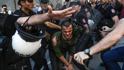 Los miembros del colectivo LGTBI en Turquía han desafiado este domingo la prohibición de las autoridades y se han echado a la calle para celebrar el Orgullo en Estambul. La policía, sin embargo, ha impedido la marcha con el despliegue masivo de agentes, el uso de gases lacrimógenos, los disparos de balas de goma y varias detenciones. Las autoridades habían argumentado "razones de seguridad". Se trata del tercer año consecutivo que se impide en la ciudad una manifestación en favor de los derechos del colectivo LGTBI. Los manifestantes han intentado este domingo reunirse en diferentes puntos del centro de la ciudad, pero han sido bloqueados por los agentes.