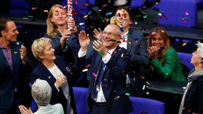 Las asociaciones de derechos civiles han celebrado el paso de Alemania, que llega incluso después de que la católica Irlanda aprobase el matrimonio homosexual, hace ya dos años. Decenas de personas han salido a la calle en Berlín para celebrar el histórico día. Con banderas de arcoíris —o paraguas, para protegerse, además de la lluvia— un buen número de ellas se ha concentrado ante la cancillería. Conny y Ramona, una pareja que convive desde hace un año y medio, también ha participado de la fiesta. “Estamos felices de poder casarnos y todo esto es posible gracias al trabajo que han hecho Los Verdes", se felicitaba Conny, experta en finanzas en una empresa de seguridad de 33 años, cubierta por la bandera multicolor LGTB+. "Angela Merkel, es una persona muy inteligente y todavía no entiendo porque se opone al matrimonio igualitario. Pero es en parte gracias a ella que el Bundestag lo ha aprobado. Este es un gran día para la comunidad gay de Alemania”, dijo, feliz de poder casarse con su novia, Ramona, trabajadora social de 28 años, que será madre en cinco meses.
