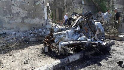 El primer día laborable tras el Ramadán y la fiesta islámica de Eid el Fitr se ha teñido de sangre en el corazón de Damasco. Al menos 20 personas, entre civiles y miembros de las fuerzas de seguridad, han muerto y otras 15 han resultado heridas este domingo en un atentado suicida con coche bomba registrado cerca de la plaza de Tahrir de la capital siria, próxima al centro histórico. El Observatorio Sirio de Derechos Humanos, ONG con informadores sobre el terreno, aseguró también que otros dos vehículos cargados con explosivos fueron interceptados y destruidos tras una persecución policial en la carretera que conduce al aeropuerto.