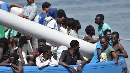 Las misiones que la UE tiene desplegadas en el Mediterráneo —Tritón, de vigilancia y salvamento, y Sophia, operación militar que también rescata barcazas cuando es necesario— designan a Italia como puerto de llegada de esos migrantes. El Gobierno de ese país quiere cambiar la regla, pero el trámite puede llevar tiempo. Para romper con ese automatismo que deriva a territorio italiano todas las embarcaciones —aunque hayan sido interceptadas en otras aguas—, Roma ha pedido especialmente a Madrid que ofrezca algunos puertos. Las autoridades italianas tienen en mente a los barcos regentados por ONG, muchos de ellos españoles o franceses, que podrían cambiar el procedimiento de desembarco más fácilmente que las misiones europeas.