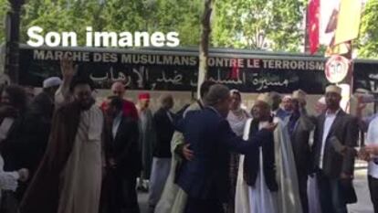 La del autobús de los imanes es una imagen poderosa. A bordo de un vehículo en el que está escrito en tres idiomas —francés, inglés y árabe— “marcha de los musulmanes contra el terrorismo”, sonrientes imanes vestidos de forma tradicional junto a otros en traje con corbata, y todos ellos sentados, entremezclados, con un judío y con varias mujeres, una de ellas con hijab, pero otra con vestido ajustado y altos tacones, melena al aire, como las demás participantes. De los dos choferes que se turnarán al volante, uno es mujer. La imagen, pues, de un islam que puede ser moderno y compatible, afirman sus defensores, con los valores laicos de un país como Francia.