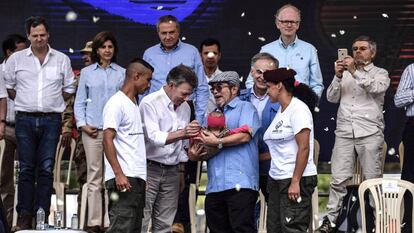 El presidente de Colombia, Juan Manuel Santos, ha firmado este lunes el decreto que concede la amnistía a 3.252 guerrilleros de las FARC que cumplieron con su compromiso de dejar las armas. Con la aplicación de esta medida son ya 6.005 los miembros de la guerrilla amnistiados por la vía administrativa, mientras que 1.400 han resuelto su situación jurídica en los tribunales y ya han salido de la cárcel a raíz de un indulto o de la concesión de la libertad condicional. El ministro colombiano de Justicia, Enrique Gil, ha señalado que el Ejecutivo está trabajando con los abogados de la organización insurgente y con el Consejo Superior de la Judicatura para “agilizar y buscar todos los mecanismos” que resuelvan los casos pendientes.