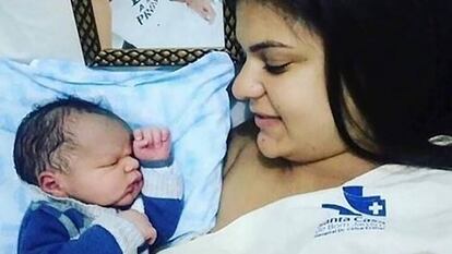 Las imágenes de un vídeo en el que el futbolista Tiaguinho, de 22 años, mostraba su felicidad al saber que su esposa estaba embarazada unos días antes de fallecer en el accidente de avión en el que su equipo, el Chapecoense, viajaba a la final de la Copa Sudamericana en noviembre del pasado añadieron emotividad a la tragedia. Este jueves su esposa, Graziele, publicó en Instagram una foto con el hijo póstumo de Tiaguinho recién nacido en brazos. El bebé le hace "sentir un pedacito de tu papá conmigo", dice en el mensaje que acompaña la imagen."Estoy segura de que tu padre estará con nosotros todos los días de nuestra vida".