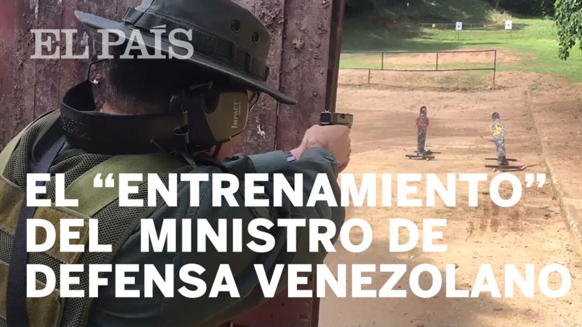 La militarización de la sociedad venezolana promovida por el Gobierno de Nicolás Maduro ofrece imágenes insólitas incluso para un régimen que recurre a diario a la narrativa del enemigo exterior para justificar sus planes. El ministro de Defensa, Vladimir Padrino, ha difundido este jueves a través de Twitter un vídeo en el que exhibe sus dotes de soldado bolivariano en un campo de tiro. Pertrechado para el combate, dispara con tino desigual a distintos blancos: unas siluetas, unos globos, unas dianas. Lo hace con una pistola, empleando ambas manos, y, con dudosa destreza, con un subfusil. La demostración, que consta de un plano semisubjetivo de más de un minuto, termina con una declaración de intenciones.