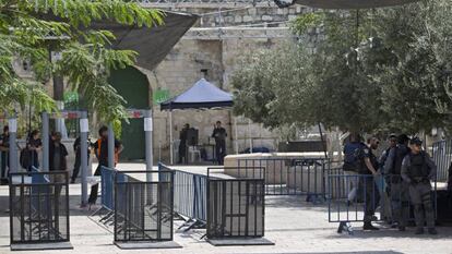 El Gobierno israelí no dio detalles sobre el refuerzo del control, pero según informó el Canal 10 de televisión, se trata de un sistema de videovigilancia inteligente especialmente diseñado para detectar personas que porten armas, y existe la posibilidad de que sustituyan a los arcos detectores instalados el 16 de julio en las entradas de la Explanada de las Mezquitas y que motivaron las protestas.