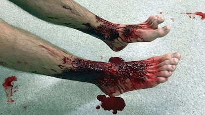 Las fotos de las piernas ensangrentadas de Sam Kanizay, de 16 años, han captado la atención mundial, más aún al saber que casi ni se enteró de lo que le había pasado hasta que, tras media hora a remojo, vio como la sangre brotaba de centenares de minúsculos agujeros. Y que, tras las primeras curas, la sangre volvía a manar.