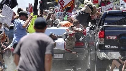 El caos se apoderó este sábado de Charlottesville, un tranquilo municipio de 45.000 habitantes en Virginia. La mayor marcha de supremacistas blancos en los últimos años en Estados Unidos derivó en enfrentamientos con contramanifestantes que dejaron un muerto (una mujer de 32 años), al menos 34 heridos y un número indeterminado de arrestados. El fallecimiento se produjo después de que un vehículo arrollase a un grupo de manifestantes de grupos críticos con los supremacistas blancos que caminaban por la calle. Lo hizo "de forma premeditada", según informó la policía.