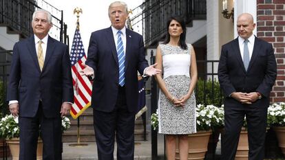Trump había lanzado su advertencia sobre posibles acciones militares contra Venezuela tras una reunión sobre seguridad con el secretario de Estado, Rex Tillerson, la embajadora de EE UU ante las Naciones Unidas, Nikki Haley, y su consejero de Seguridad Nacional, el general H. R. McMaster. El tema estrella del encuentro y de las preguntas de los periodistas iba a ser la tensión con Pyongyang, pero hubo palabras gruesas para el país caribeño, con sus dosis necesarias de inconcreción.