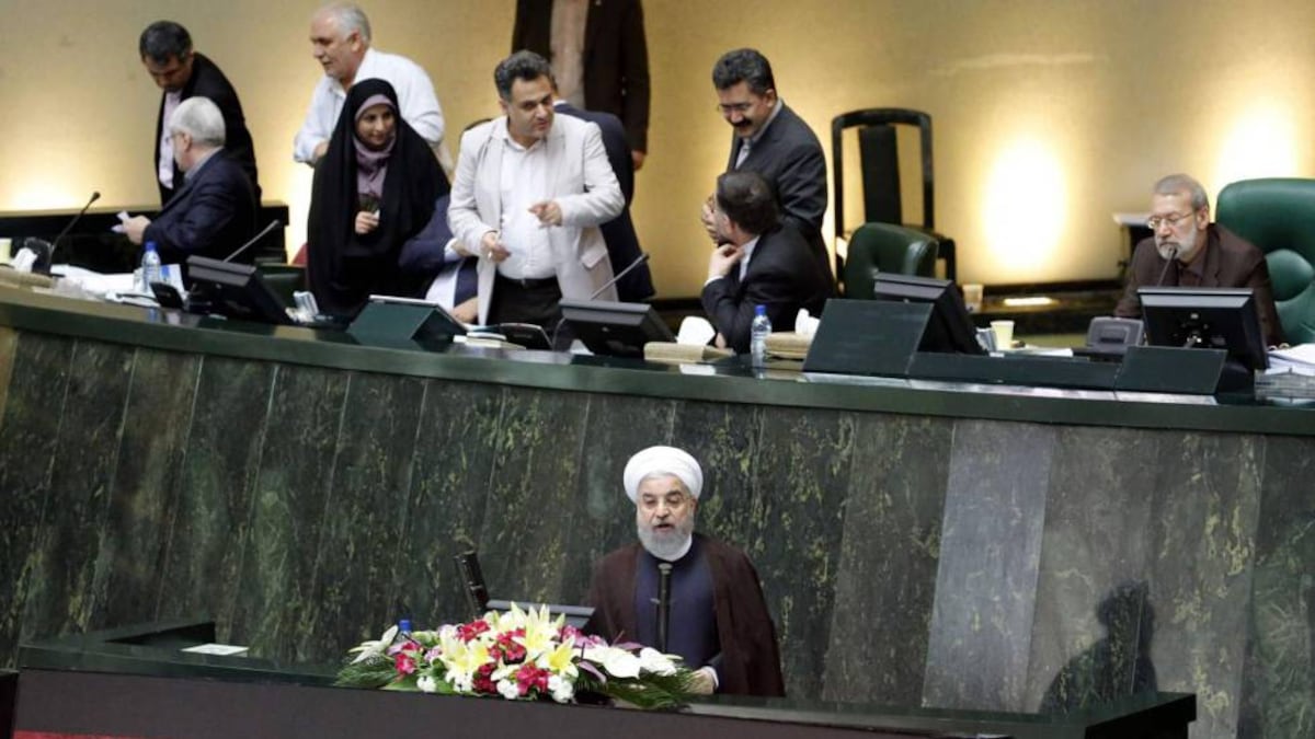 El presidente de Irán, Hasan Rohani, ha advertido este martes de que su país podría retirarse del acuerdo nuclear firmado en julio de 2015 con seis grandes potencias si que Estados Unidos impone nuevas sanciones contra Teherán. En un discurso televisado en el Parlamento, ha asegurado que el regreso a la situación previa al acuerdo es posible "en un tiempo corto, no en un plazo de semanas o meses sino en días u horas".
