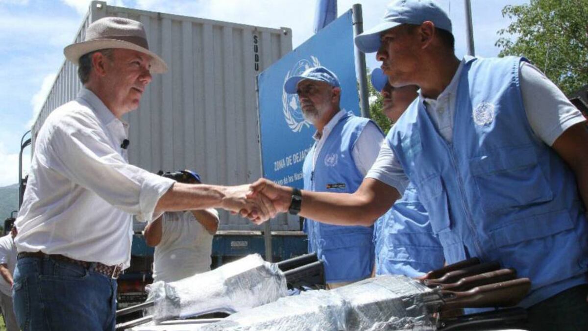 “Lo que creíamos imposible, hoy es una realidad. El desarme de las FARC es definitivo”, dijo el presidente Juan Manuel Santos, antes de ordenar cerrar el contenedor con el último armamento entregado por la guerrilla. “En Irlanda la dejación de armas tomó diez años. Aquí ocho meses”, ha recordado Santos justificando el cumplimiento de la primera misión pese a los retrasos en el calendario planteado en los acuerdos.