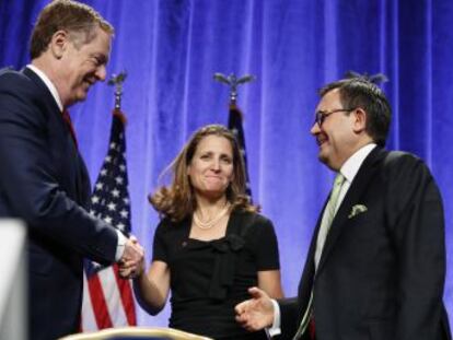 Guajardo compareció ante la prensa en la sede de su embajada en Washington horas después del arranque del acto con el que se daba por inaugurada la ronda de conversaciones. Y, en ese enuentro, pese a lo suavizado por el mexicano, Lighthizer hizo toda una declaración de intenciones: la Casa Blanca no se va a conformar con retoques. El TLC “ha destruido 700.000 empleos”, apuntó. “Básicamente pensamos que el tratado ha fallado a muchos estadounidenses y debemos mejorarlo” subrayó.