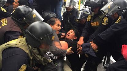 El 15 de junio empezó una huelga de maestros en Perú con reivindicaciones laborales que han sido parcialmente atendidas, pero pasados dos meses, este miércoles, la cuestión llegó a su momento más crítico con las agresiones de la policía a los profesores en Lima y la comparecencia de la ministra de Educación, Marilú Martens, ante la Comisión de Educación del Congreso, durante siete horas.