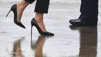 El zapato de tacón de Melania Trump se convirtió este martes en un símbolo -efímero- de la desconexión que tiene el clan presidencial con la realidad. La primera dama de Estados Unidos eligió en un primer momento un stiletto de vértigo para la primera visita a la zona afectada por el huracán Harvey. Lo completaba con una chaqueta verde tipo bomber del ejército, gafas de aviador, pantalones capri ajustados e iba perfectamente peinada. El conjunto provocó todo un revuelo en el universo de Twitter, tan propenso a la conmoción instantánea, pero el debate nacional duró lo que el vuelo a Texas. Melania bajó del avión en zapatillas de deporte blancas, con el pelo recogido en una coleta.