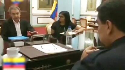 Zapatero, que había renunciado a seguir con su rol de facilitación en la víspera de la instalación de la Constituyente, reapareció el miércoles en el tablero de ajedrez venezolano. Luego de haberse reunido en casa de López, según diversas fuentes, apareció en una foto oficial en el palacio de Miraflores en compañía de Maduro, de la primera dama, Cilia Flores, y de los influyentes hermanos Rodríguez, Delcy y Jorge, presidenta de la Constituyente chavista y Alcalde de la zona centrooccidental de Caracas, respectivamente. “[Estuvimos] trabajando todos los temas que tienen que ver con el diálogo, el acompañamiento del diálogo”, aseguró Maduro.