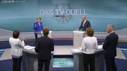 Era un cara a cara muy esperado. El único debate entre los candidatos rivales. Al frente del bloque conservador, Angela Merkel, la canciller imperturbable peleando por un cuarto mandato. Al otro lado del plató, condenado a la ofensiva y a la zaga en los sondeos, Martin Schulz, esperanza blanca de la socialdemocracia alemana. El debate era su gran oportunidad para propiciar la remontada, pero no convenció. En un intento por mostrar su lado más duro pidió romper las negociaciones con Turquía de acceso a la UE. “Cuando sea canciller, cancelaré las conversaciones”.