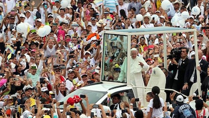 El Pontífice también hizo referencia a la lucha de las mujeres en una ofensiva contra la violencia de género que azota a Colombia, donde solo el año pasado se registraron 731 crímenes machistas. “En comunidades donde todavía arrastramos estilos patriarcales y machistas es bueno anunciar que el Evangelio comienza subrayando mujeres que marcaron tendencia e hicieron historia”, dijo.