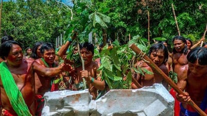 La relación con la selva es mística. La Amazonia, según ellos, pertenece a dioses invisibles. “La tierra tiene dueño, el río tiene dueño, los árboles tienen dueño. No fue el hombre el que inventó la naturaleza”, dice el cacique Wajãpi. Por eso tiene que ser respetada, y los minerales han de quedarse donde están para que los árboles permanezcan siempre en pie. “Si no fuera por nosotros creo que este bosque ni siquiera existiría”, apostilla. Es la Amazonia que los alimenta y los protege de la ganancia de los blancos.