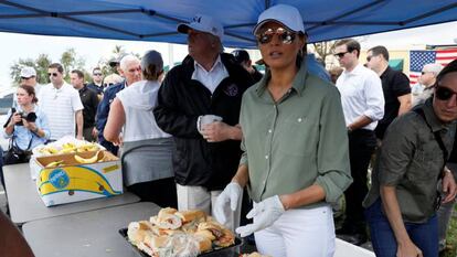 En Fort Myers el presidente insistó en su apuesta por fortificar la frontera con México. "Tenemos que tener un muro, sin un muro no hacemos nada", afirmó. Trump alzaba su bandera antiinmigración en un estado, Florida (21 millones de habitantes, tercero más poblado de EE UU), en el que estos días el grueso de la mano de obra empleada para reparar destrozos y averías y recoger desechos está formado en su mayor parte por una legión de inmigrantes hispanos, con papeles o sin ellos.