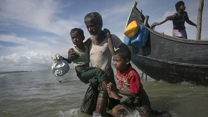 “Nunca hemos tenido libertad, siempre vivimos asustados. Nos torturan de diferentes formas”, balbucea Ramjam, que solo ahora se percata de que su rostro ha quedado al descubierto. Pudorosa, se cubre la cara, salvo los ojos, con un velo negro. Musulmanes, los rohingya llevan décadas marginados y perseguidos en Myanmar, de mayoría budista, que no les reconoce como una de sus 135 etnias oficiales pese a vivir desde hace siglos en el estado occidental de Rajine (hoy conocido como Arakan), limítrofe con Bangladés, un país donde el 90% de la población profesa la religión musulmana. Escudándose en que son inmigrantes ilegales bangladesíes, Myanmar les negó la ciudadanía en 1982; fue su condena al ostracismo, a la privación de derechos básicos como educación o empleo. Pero desde el pasado 25 de agosto, cuando rebeldes del llamado Ejército de Salvación Rohingya de Arakan (ARSA, en sus siglas en inglés) lanzaron una ofensiva contra cuarteles militares y de policía birmanos, también son masacrados en respuesta, en medio de lo que el Gobierno de Myanmar defiende como una campaña contra “fuerzas terroristas”.