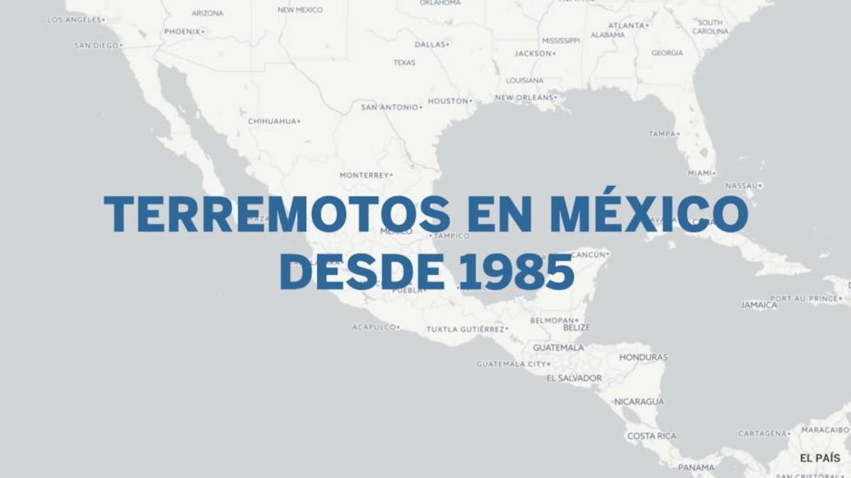 El mapa superior muestra los seísmos registrados en el área de México (no se muestran los terremotos al sur de cierta latitud) con una magnitud superior a 4,5 entre el 1 de enero de 1985 y las primeras horas del día 20 de septiembre, según el Servicio Geológico de los Estados Unidos. Pase el cursor sobre los puntos o haga clic para obtener más información de la fecha y la magnitud.
