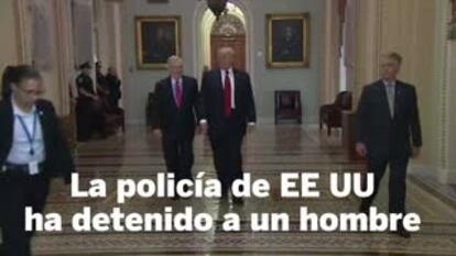El incidente ocurrió cuando el presidente entraba al Capitolio para almorzar con los senadores republicanos. Acompañado del líder de la mayoría en el Senado, Mitch McConell, Trump mantuvo su sonrisa congelada y pasó de largo mientras numerosos fotógrafos y guardias de seguridad se giraron para observar quién había lanzado las banderas. El manifestante fue identificado como Ryan Clayton, integrante de un grupo activista contra Trump llamado "Americans Take Action" (Los americanos toman acción).