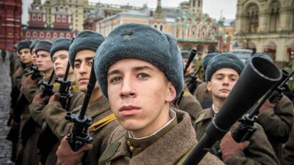 EL PAÍS recorrió a pie la distancia entre los dos grupos escultóricos el 4 de noviembre, día de la Unidad Popular, la fiesta nacional que en 2005 se convirtió en la alternativa al 7 de noviembre (fecha en la que se conmemoraba la revolución bolchevique). Lo que ahora se celebra es la expulsión de Moscú de polacos y lituanos, que en 1612 puso fin al llamado “periodo de las revueltas” y abrió el camino a la dinastía de los Románov, que dirigió Rusia durante más de 300 años. Inicialmente, la nueva fiesta nacional escoró peligrosamente hacia posiciones ultras hasta que en 2014 la anexión de Crimea niveló el terreno patriótico y aglutinó a los sectores más nacionalistas en torno a Putin y la línea oficial. Hoy ya son bastantes los rusos que, interrogados por sociólogos y periodistas, afirman celebrar la “unidad” de la ciudadanía sin entrar en honduras históricas.