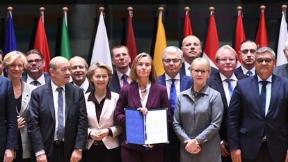 La firma, uno por uno, de los ministros implicados en este proyecto alrededor de una gigantesca mesa redonda marcó el inicio de una nueva tarea para la UE. Los 23 países signatarios (todos menos Reino Unido, Dinamarca, Portugal, Irlanda y Malta) escenificaron así la constitución de este Schengen de la defensa. En sus inicios, el proyecto europeo ya planteó construir este pilar, pero abandonó la idea por las reticencias que generaba en Francia. Este Estado es precisamente hoy —junto con Alemania, Italia y España— el principal impulsor de la cooperación estructurada permanente (PESCO, por sus siglas en inglés). Mogherini quiso reconocer el liderazgo de estos cuatro Gobiernos.