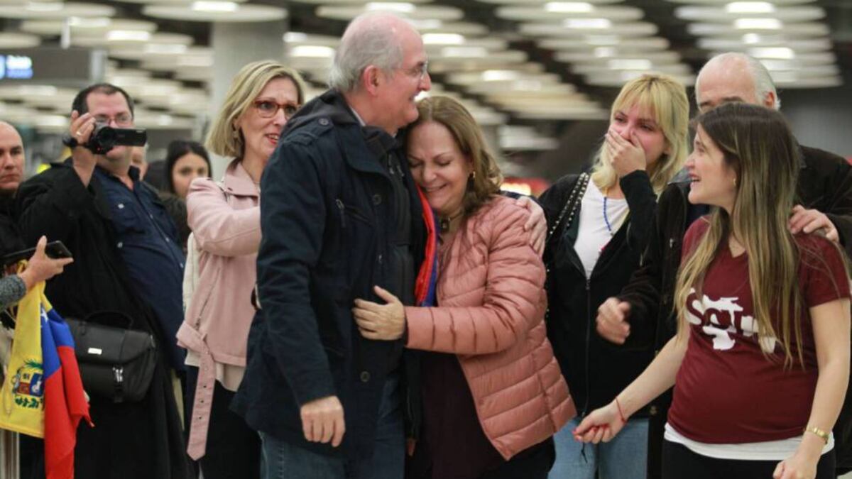 En el aeropuerto le esperaban su esposa Mitzy Capriles y sus dos hijas, Miitzy y Antonietta, esta última embarazada. La familia aseguró no haber sabido nada de los planes de evasión de Ledezma hasta el último momento. "Nunca nos hizo partícipe, hasta el final no sabíamos que vendría", dijo su mujer, que lleva tiempo viviendo en Madrid.
