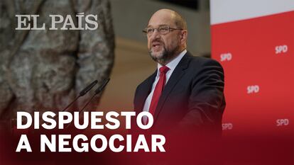 “Hemos acordado que aceptaré la invitación del presidente [de Alemania, Frank-Walter Steinmeier] para mantener negociaciones con otros partidos”, ha dicho Schulz en una breve intervención en la sede de su partido en Berlín. Y ha añadido: “Una cosa está clara: si las conversaciones conducen a una situación en la que participemos en un Gobierno en la forma que sea con los socios que sea, las bases del partido deberán votarlo”.