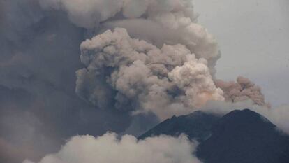 Desde la semana pasada una densa columna de cenizas y de humo han sido propulsados por la montaña, lo que ha obligado a cancelar cientos de vuelos y ha dejado atrapados a cerca de 120.000 turistas.