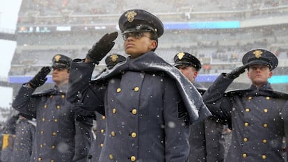 Askew, de 21 años recién cumplidos, se convirtió en la primera mujer negra nombrada primera capitana de los 4.400 cadetes de West Point el pasado verano, un puesto de prestigio que han ocupado militares muy reconocidos en Estados Unidos. El desfile previo al partido de este sábado supuso la primera gran exhibición de ese techo roto por la chica para su raza y su sexo. Ha sido en el estadio Lincoln Financial de Filadelfia, en un acontecimiento que la joven solía seguir con devoción cuando era una niña. “Nunca había visto algo así y le pregunté a mi madre cómo podría ponerme algún día al frente de algo así”, contó la cadete esta semana a The Washington Post. “Es surrealista darme cuenta de todo lo que me ha pasado en este semestre”, añadió.