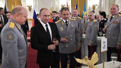 El presidente ruso, Vladímir Putin, condecoró este jueves en el Kremlin a los militares que se han distinguido en las operaciones en Siria y aprovechó la ocasión para sacar músculo y agradecer a las Fuerzas Armadas por su desempeño en la lucha contra el Estado Islámico. Putin reveló que 48.000 soldados rusos pasaron por Siria desde que Moscú decidió intervenir militarmente al lado del régimen de Bachar el Asad y que estos eliminaron a más de 60.000 fundamentalistas, entre ellos 2.800 extremistas con pasaporte de la Federación Rusa.